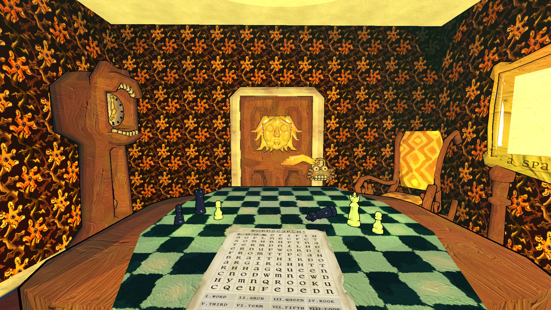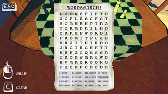 A short, surrealistic puzzle game / escape-room style experience in which you must find the perspective to uncover a way forward. Dissect a familiar world of witches, queens, cogs and dreams... and a very ordinary wordsearch.